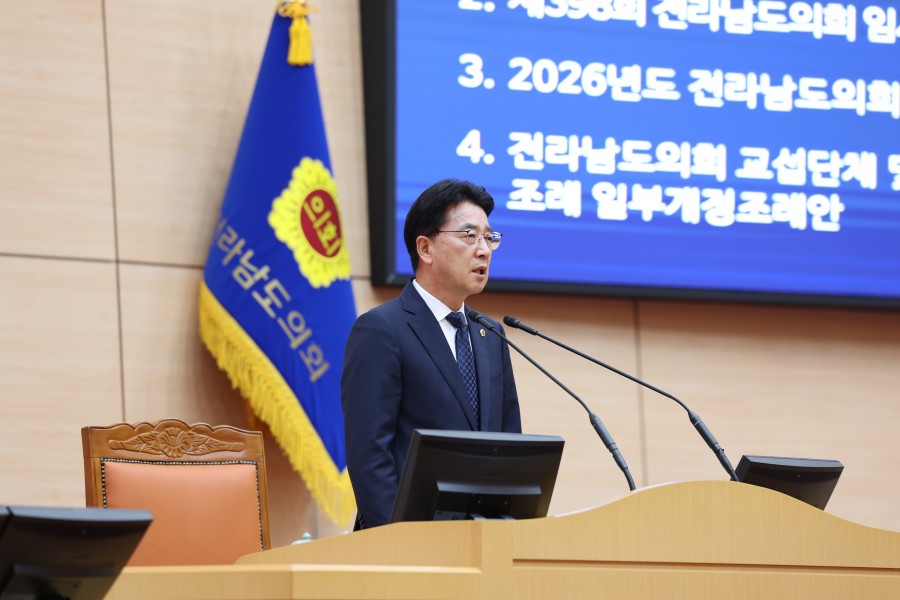 김 의장은 임시회 본회의에서 개회사를 통해 "전남·광주통합특별법에 3청사를 균형 있게 운영하도록 명시된 만큼, 동부청사·무안청사·광주청사의 역할과 기능을 명확히 구분하는 구체적인 실행계획이 조속히 마련돼야 한다"며 이같이 말했습니다.