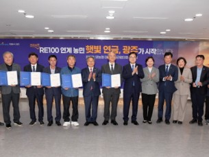 광주시가 전국 최초로 기업 RE100과 연계한 영농형 태양광 사업을 추진하기로 하면서 정부와 자치단체, 민간위원들이 참여하..
