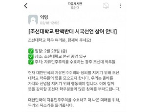 광주에서 윤석열 대통령 탄핵 반대 집회가 열린 데 이어 조선대 일부 학생이 오는 28일 탄핵 반대 시국선언을 예고했습니다...