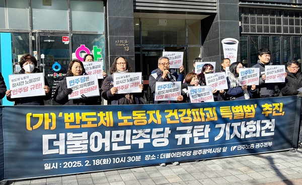 노조는 오늘 더불어민주당 광주시당 앞에서 기자회견을 열어 "민주당은 지난 3일 반도체 특별법 정책 토론을 열어 특별법에 주 52시간 예외 조항을 제외하려고 했다"며 이같이 밝혔습니다.