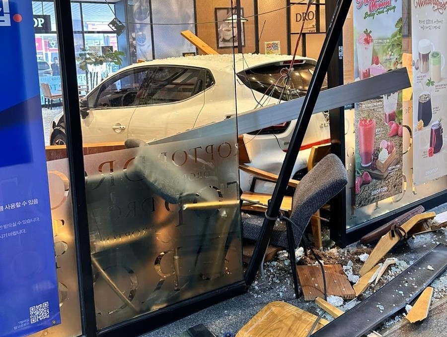 A씨 차량은 출입문 쪽 유리를 깨고 매장을 가로질러 반대편 유리문까지 들이받은 뒤에야 멈춰 섰습니다.
