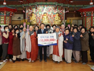 광주 도심 전법도량 연화사가 광주 동구인재육성장학회에 장학금 1천만 원을 기탁했습니다. 연화사 주지 명신스님은 ..