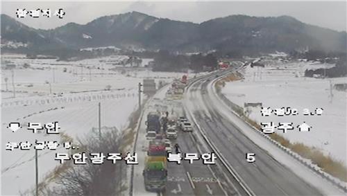 무안광주고속도로 눈길 8중 추돌…12명 경상