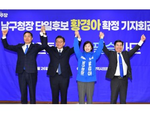 황경아 예비후보는 오늘 광주시의회에서 기자회견을 열고 김용집·성현출·하상용 예비후보와 함께 '원팀 연대'를 선언하며 단일..