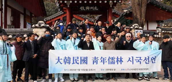 대한민국 청년유림회는 "12·3 비상계엄 사태를 촉발한 윤석열 대통령의 즉각적인 퇴진을 촉구한다"고 말했습니다.