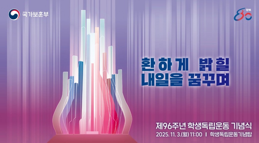 국가보훈부는 '제96주년 학생독립운동 기념식'을 내일(3일) 광주광역시 서구에 위치한 학생독립운동기념탑에서 개최한다고 밝혔습니다.