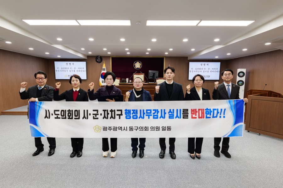 광주 동구의회가 행정안전부가 추진하는 시·도의회의 시·군·구 자치구 위임사무에 대한 행정사무감사 실시를 위한 시행령 개정에 반대하는 성명서를 발표했습니다.