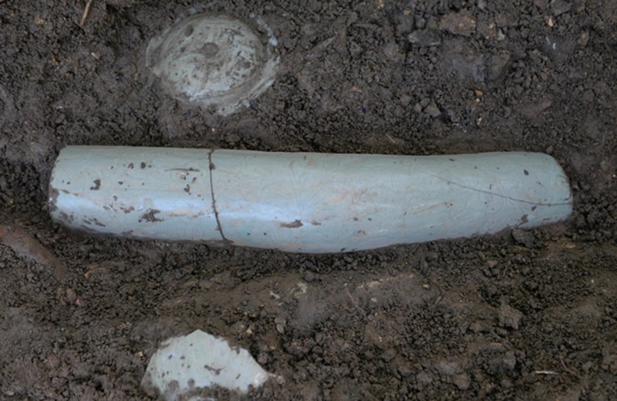 강진 청자 요지인 사당리에서 발굴된 대평명 양각 해석류화문와는 휜 모양 청자로 매우 희귀하고, 예술과 학술 가치가 높다고 전라남도는 설명했습니다.