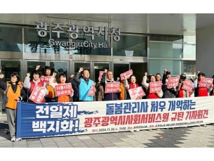 민주노총 서비스연맹 전국돌봄서비스노동조합 광주지부가 처우 개선을 위해 수가제 대신 전일제를 시행해야 한다고 촉구했습니다.지..