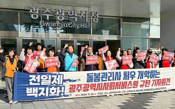돌봄노조 광주지부, 처우 개선 위한 전일제 시행 촉구