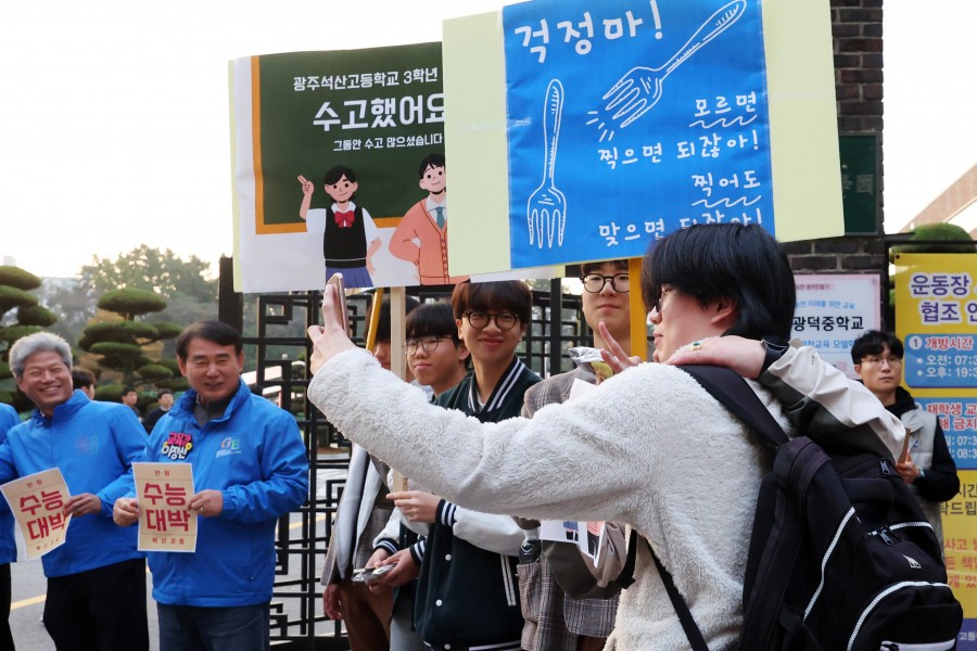 이정선 광주시교육감은 광주 광덕고를 찾아 수험생들에게 "광주 학생을 응원합니다"라며 격려했고, 김대중 전남교육감은 나주 봉황고에 들어서는 수험생들을 반갑게 맞이하며 최선을 다해 달라고 당부했습니다.