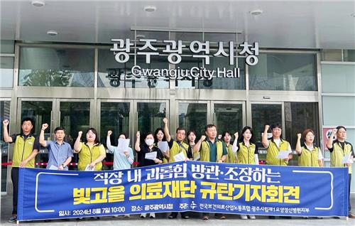 전국보건의료산업노동조합·광주시립제1요양정신병원지부는 오늘(7일) 광주시청 앞에서 기자회견을 열고 "직장 내 괴롭힘이 발생했는데도 이를 방관하고 조장한 병원 운영재단을 규탄한다"고 밝혔습니다.