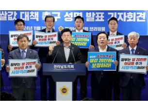 전라남도의회는 오늘(7일) 성명을 통해 "최근 산지 쌀값은 80kg 기준 18만3천원으로 지난해 같은 기간 20..