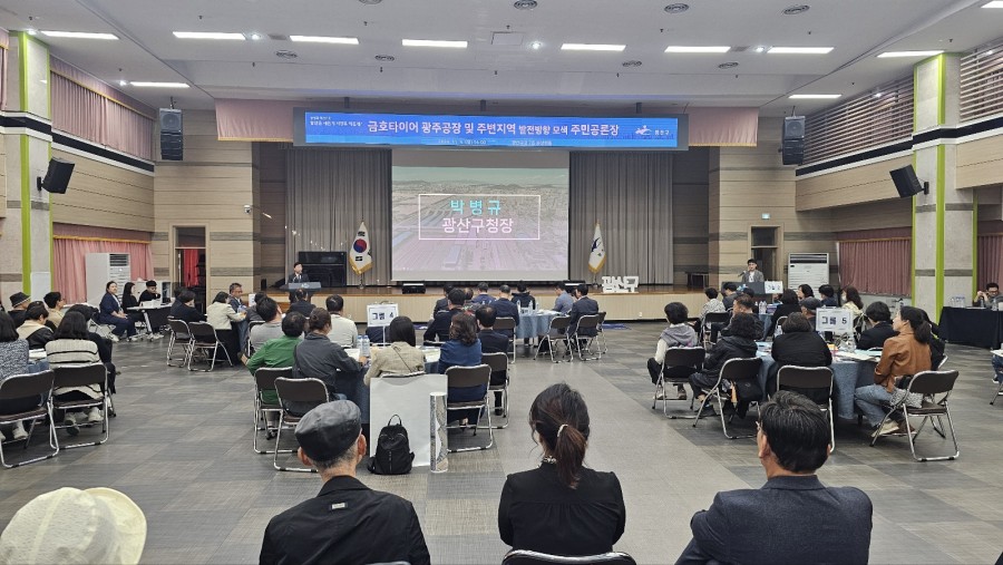 오늘(4일) 광산구청 7층 윤상원홀에서 열린 '주민공론장'에는 지역 주민들을 비롯해 시민사회단체, 금호타이어 노사, LH공사 관계자 등 100여명이 참석했습니다.