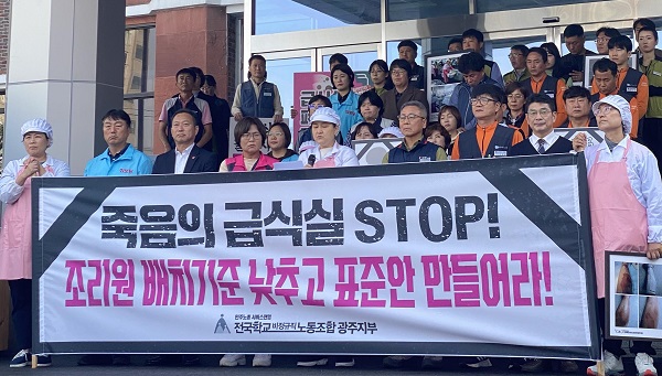 광주지부는 "조리원 인력 부족을 해결하고 표준 배치기준을 만들기 위해 올해 5월부터 조리원 배치기준 개선 회의를 9차례 했으나 광주시교육청은 개선 대책을 세우지 않고 추가 채용 불가 등의 예년 수준으로 일관하고 있다"고 주장했습니다.
