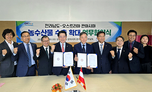 김영록 전남지사가 전남 농수산식품의 유럽 수출 확대를 위해 오스트리아 판아시아와 5년간 3천만 달러 수출 협약을 체결했습니다.