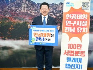 김영록 전남지사가 미래 청정에너지인 인공태양, 즉 핵융합 연구시설의 전남 유치를 응원하는 릴레이 챌린지를 시작했습니다. ..