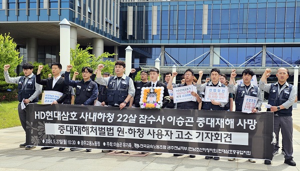 기자회견을 마친 금속노조는 HD현대삼호를 중대재해처벌법 위반 혐의로 노동청에 고발했습니다.