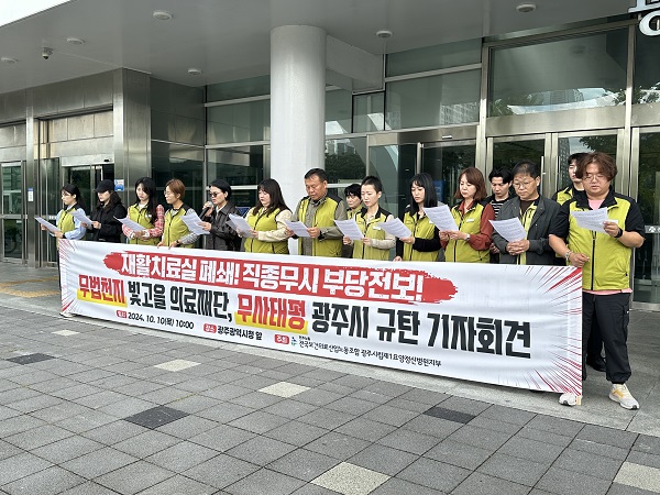 보건노조는 오늘 오전 광주시청 앞에서 기자회견을 열어 "중노위 결정이 나온 만큼 빛고을의료재단은 부서 이동한 직원들을 원래 부서로 원상복구 시켜야 한다"며 "위탁을 맡긴 광주시도 문제 해결에 나서야 한다"고 말했습니다.