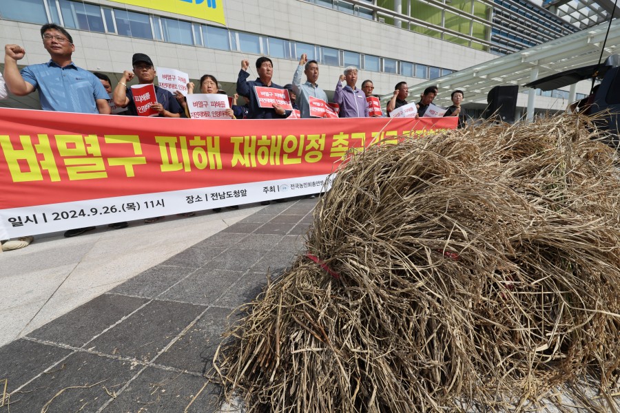 전남 시장군수협의회는 최근 성명을 통해 폭우와 무더위로 인한 농작물 피해가 증가하는 가운데, 벼멸구 확산으로 전남 벼 재배면적의 13.3%가 피해를 입었다고 밝혔습니다.