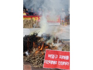 전남지역 농민들이 병충해로 말라버린 벼를 태우며 정부에 벼멸구 피해를 자연재해로 인정하라고 촉구했습니다. 전국농..