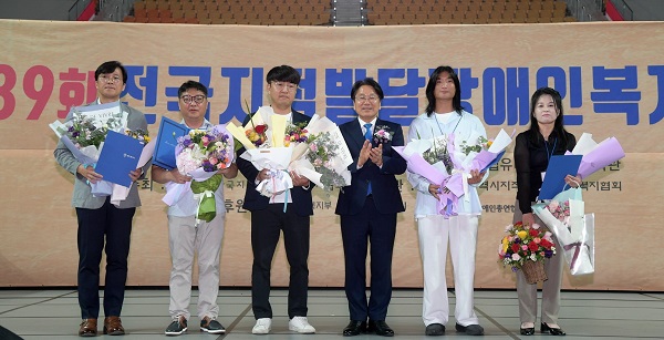 제39회 전국 지적 발달 장애인복지대회 기념식이 오늘 오전 광주여대 시립 유니버시아드 체육관에서 열렸습니다.