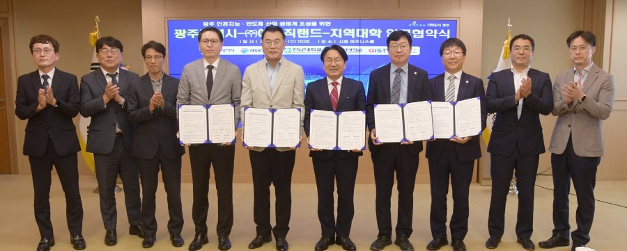 광주시와 전남대, 조선대, 광주과학기술원, 에이직랜드는 오늘 광주시청에서 인공지능·반도체 산업 생태계 조성을 위한 업무협약을 했습니다.