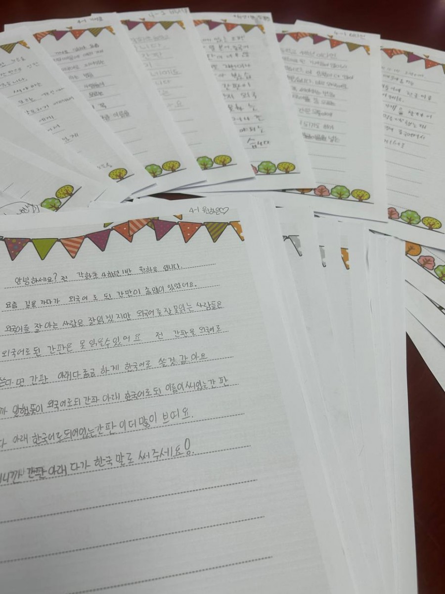 앞서 광주 각화초등학교와 빛고을초등학교 4학년 학생 150명은 지난 7월초 실명 자필 편지로 '한글간판을 늘려달라'는 내용의 청원을 정 의원 측에 전달했습니다.