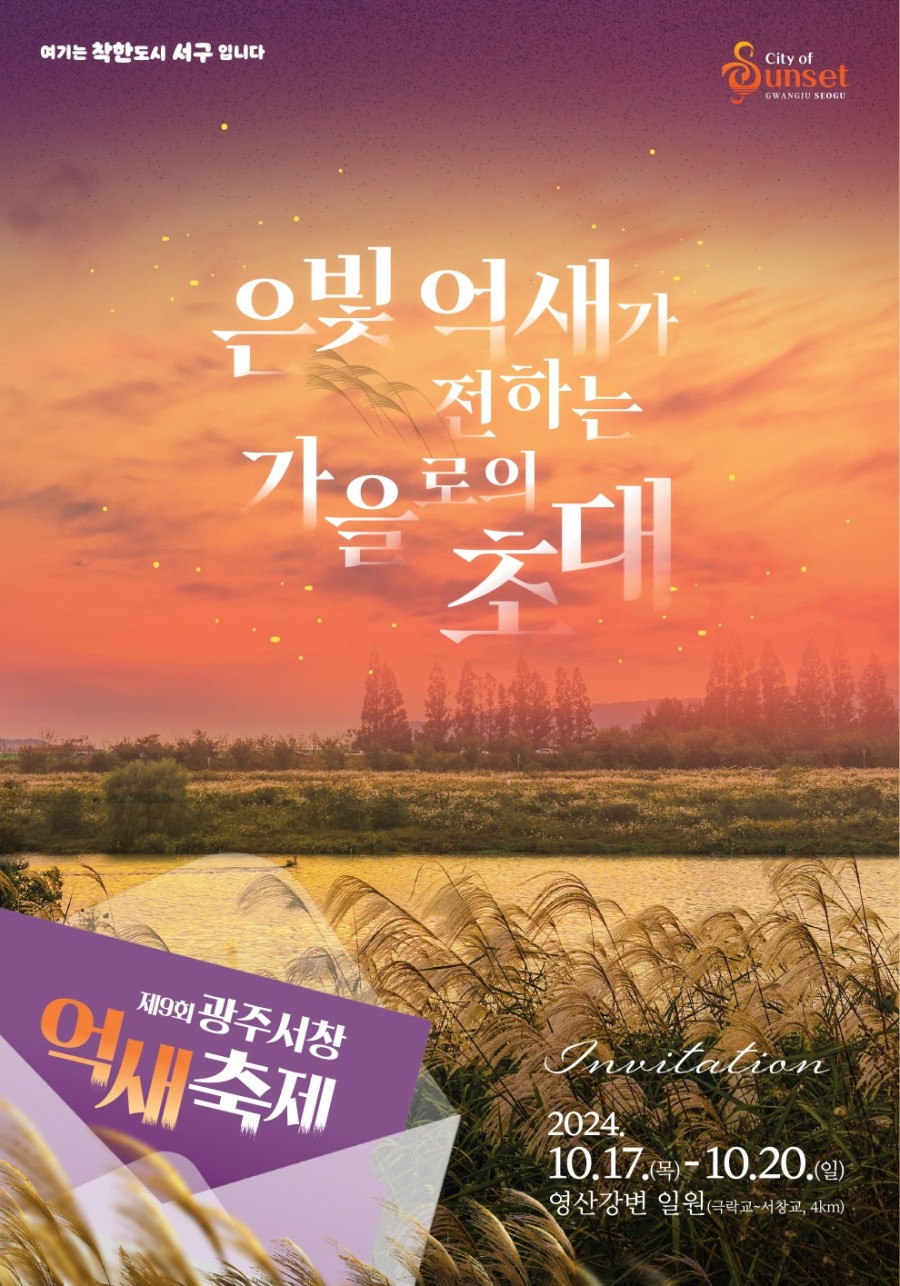 가을 정취가 물씬 묻어나는 '제9회 광주 서창 억새 축제'가 오는 다음달 17일부터 20일까지 영산강 일원에서 열립니다.