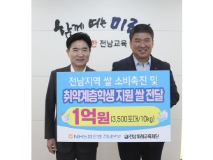 NH농협은행 전남본부가 전남미래교육재단에 1억 원어치의 쌀을 기탁했습니다.이번 쌀 나눔은 도내 취약계층 학생들을 지원하고..