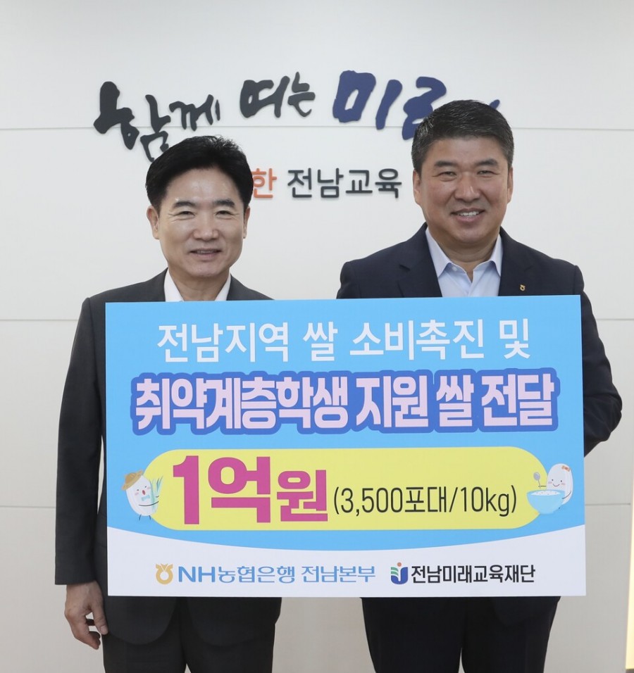 NH농협은행 전남본부가 전남미래교육재단에 1억 원어치의 쌀을 기탁했습니다.