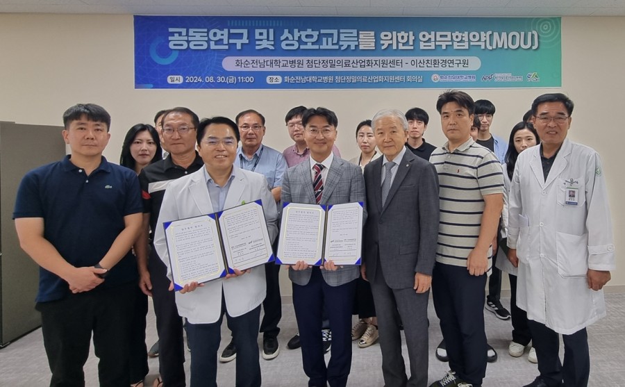 화순전남대학교병원 첨단정밀의료산업화지원센터와 ㈜이산친환경연구원이 신약소재물질 사업화를 위한 업무협약을 체결했습니다.