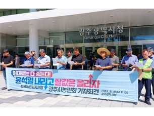 전국농민회총연맹 광주시농민회가 쌀값 폭락에 대한 정부의 대책마련을 촉구했습니다. 단체는 오늘 광주시청 ..