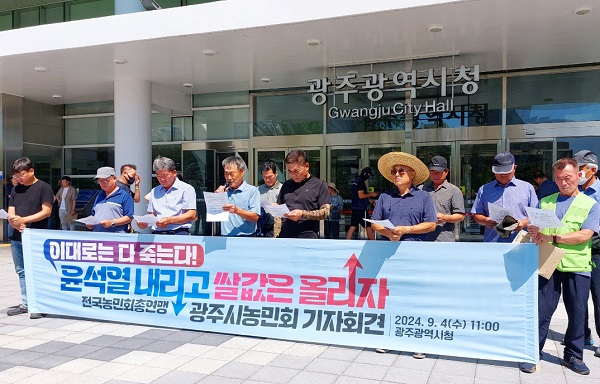 전국농민회총연맹 광주시농민회가 쌀값 폭락에 대한 정부의 대책마련을 촉구했습니다.