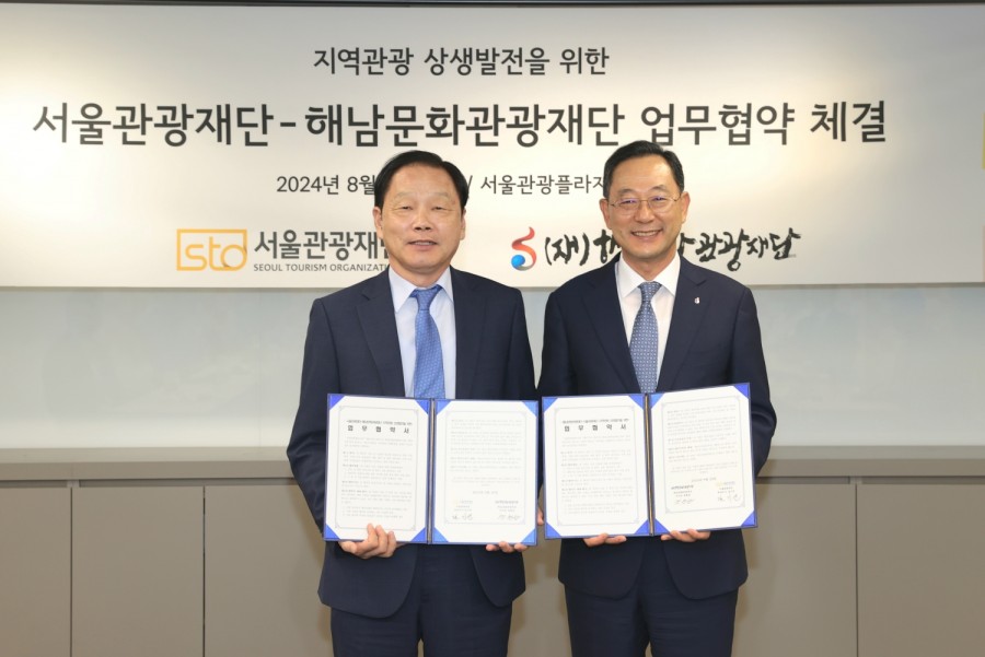 해남문화관광재단과 서울관광재단이 지역관광 상생발전을 위한 업무협약을 체결하고, 관광교류 확대를 위해 적극 협력하기로 했습니다.