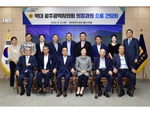 광주광역시의회가 역대 의장들을 초청해 소통 간담회를 열었습니다.이 자리에는 역대 의장 18명 중 서병조·조호권 전..