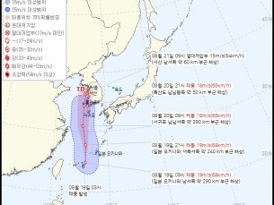 한반도로 북상 중인 소형 태풍 제9호 태풍 종다리가 모레 새벽 광주에 최근접 하겠습니다..