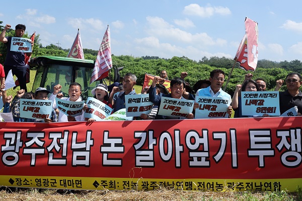 전국농민회총연맹 광주전남연맹은 오늘 전남 영광군 대마면에서 기자회견을 열어 "정부는 시장격리 등 쌀값 폭락 대책을 조속히 이행하라"고 요구했습니다.