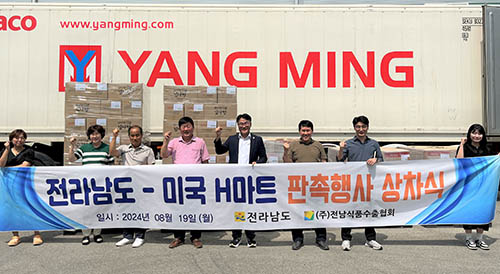 전라남도는 오는 10월 ‘전라남도-미국 H마트 연계 판촉행사’를 위한 물품 상차식을 개최했습니다.