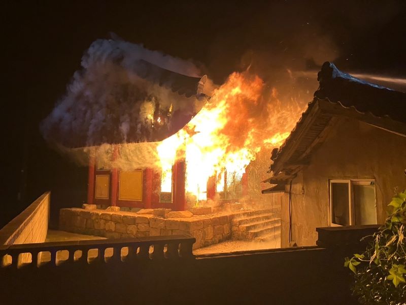 전남 장흥 미륵사에서 불이 나 대웅전이 불에 타고 내부에 모셔져 있던 부처님도 피해를 입었습니다.