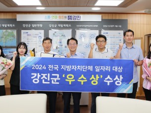 전남 강진군이 고용노동부 주관 ‘2024 전국 지방자치단체 일자리대상’에서 지역 일자리 공시제 부문 우수상을 수상했습니다..