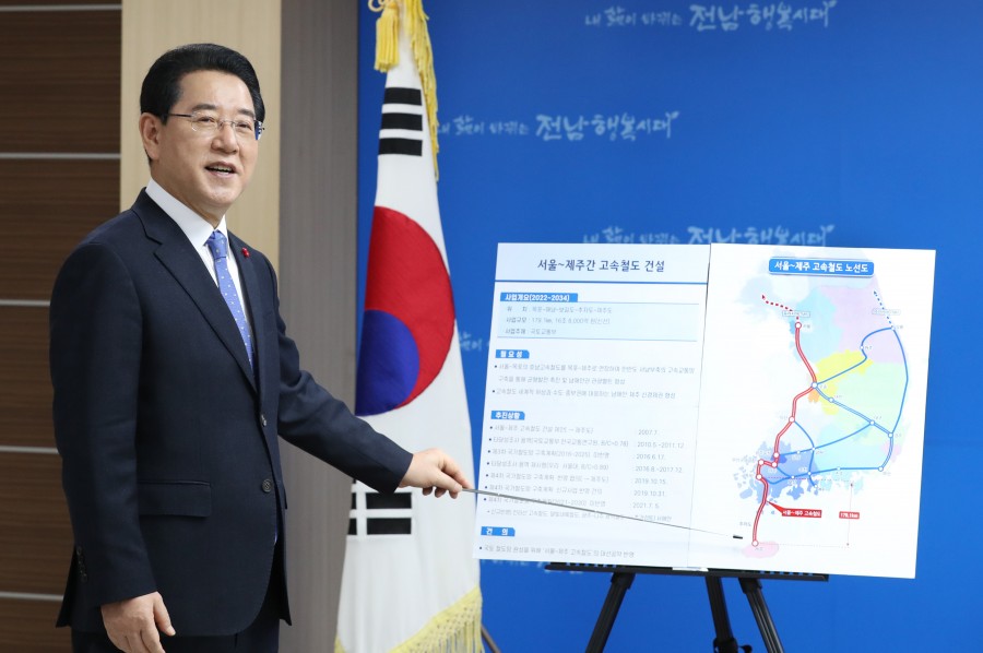 김 지사는 또 국립 김산업 진흥원 및 마른김 물류단지 조성을 비롯해 인공지능(AI) 첨단 축산업 융복합 밸리 조성, 케이(K)-디즈니 조성을 위한 인력 양성 및 콘텐츠 제작 지원, 민간 전용 우주발사체 엔진연소시험시설 구축 등 2025년 국비 사업에 대한 관심도 촉구했습니다.