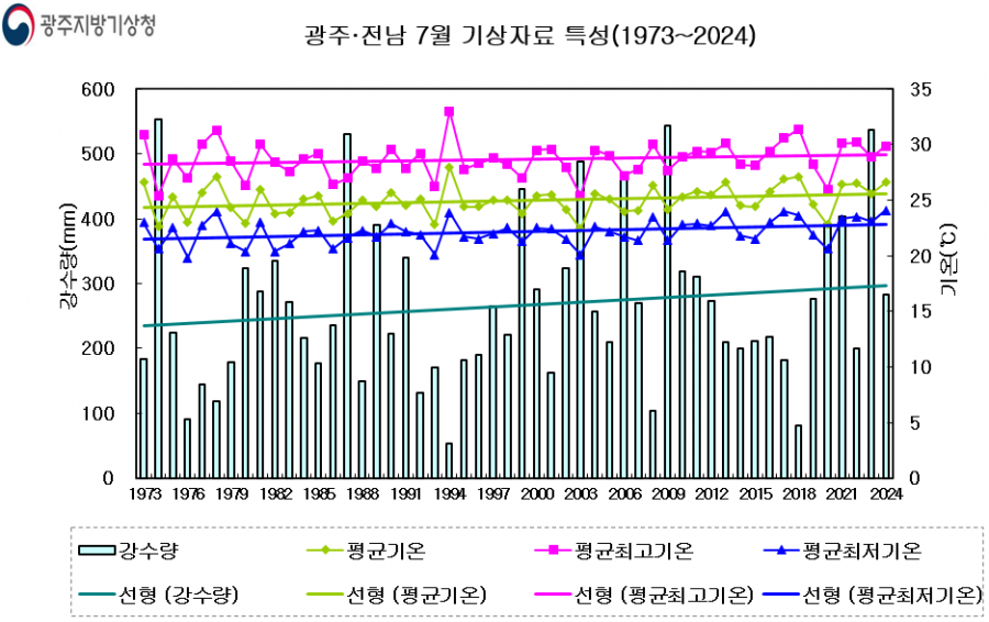 광주지방기상청은 오늘(7일) 2024년 7월 기후 분석 결과를 발표했습니다.