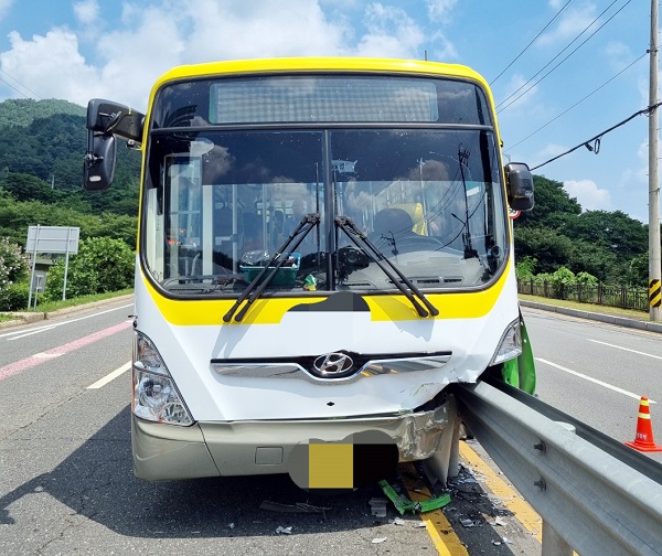 오늘 오전 11시쯤 전남 나주시 경현동 한 도로에서 주행중이던 시내버스가 중앙분리대를 들이받는 사고가 났습니다.