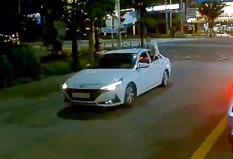 지난 28일 저녁 10시쯤 광주 서구 풍암동 한 교차로를 가로지르던 해당 차량은 횡단보도 앞에서 서행하거나 멈춰 서지 않았고 창문에 매달린 탑승자들이 지른 고성도 영상에 고스란히 녹음됐습니다.