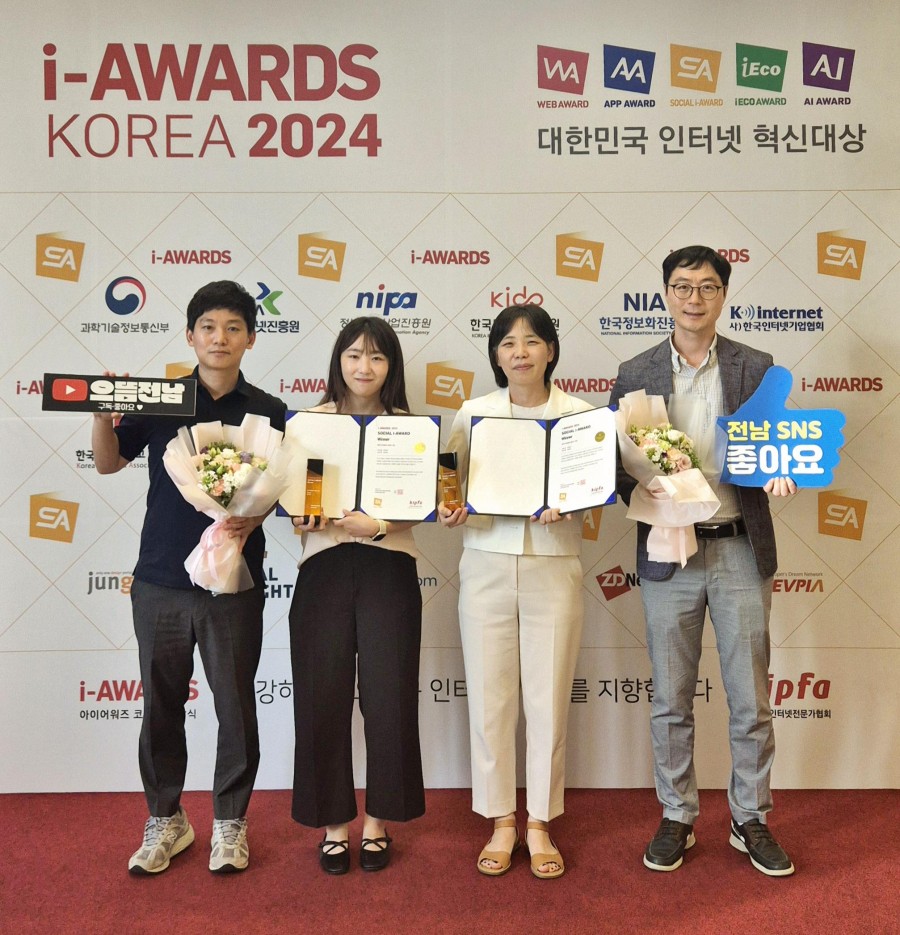 전라남도 공식 유튜브와 블로그가 국내 최고 권위를 자랑하는 '소셜아이어워드 2024'에서 광역자치단체 분야 대상을 받았습니다.