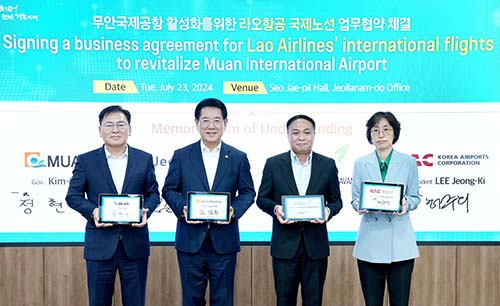 전라남도는 무안군과 한국공항공사·라오스 국영 항공사 라오항공과 무안국제공항 국제노선 개설 업무협약을 체결했습니다.