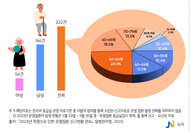 지난해 전남의 온열질환자는 모두 222명이었으며 이 가운데 63%가 50세 이상인 것으로 집계됐습니다.