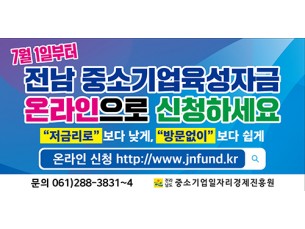 전라남도는 전남중소기업일자리경제진흥원에서 운용하는 중소기업육성자금 접수 방법이 오프라인에서 온라인으로 전면 개편됐다고 밝혔..