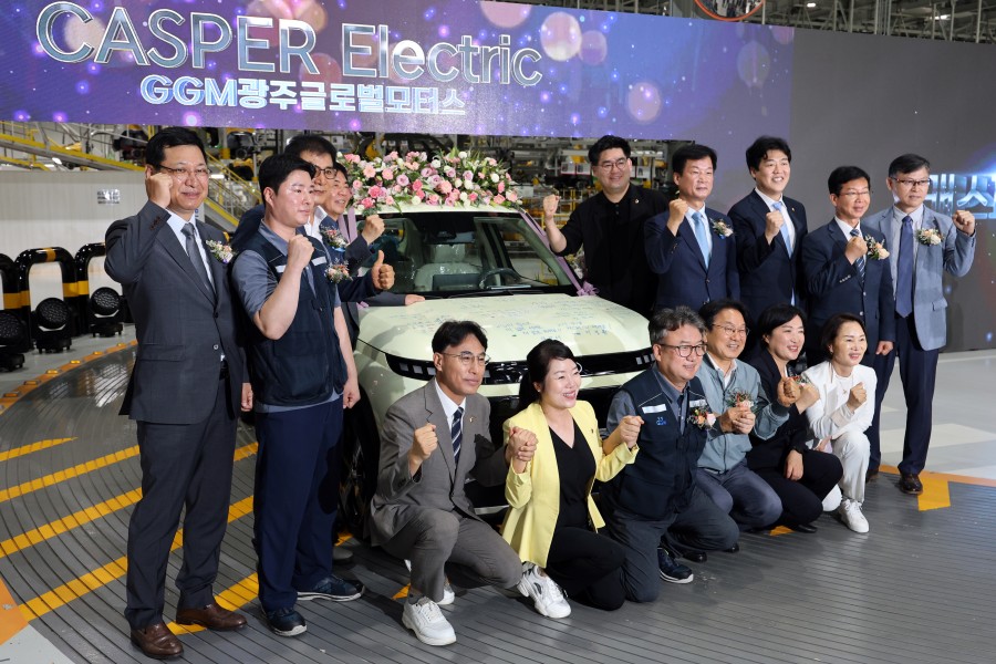 광주글로벌모터스는 오늘 윤몽현 대표이사를 비롯한 강기정 광주시장과 신수정 광주시의회 의장, 김승찬 현대자동차 상무 등 100여 명이 참석한 가운데 ‘캐스퍼 일렉트릭 1호 차 생산 기념식’을 열었습니다.